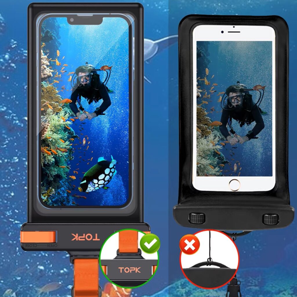 Este accesorio protege tu teléfono de salpicaduras, gotas de lluvia, arena o incluso inmersiones breves, sin impedir que sigas utilizando la pantalla táctil ni la cámara.